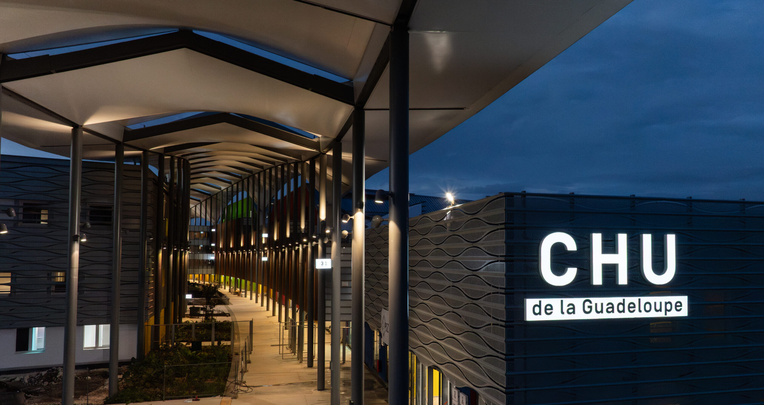 Reconstruction complète du Centre Hospitalier Universitaire de Guadeloupe, sur un terrain vierge de 19 hectares aux Abymes (Pointe-à-Pitre).